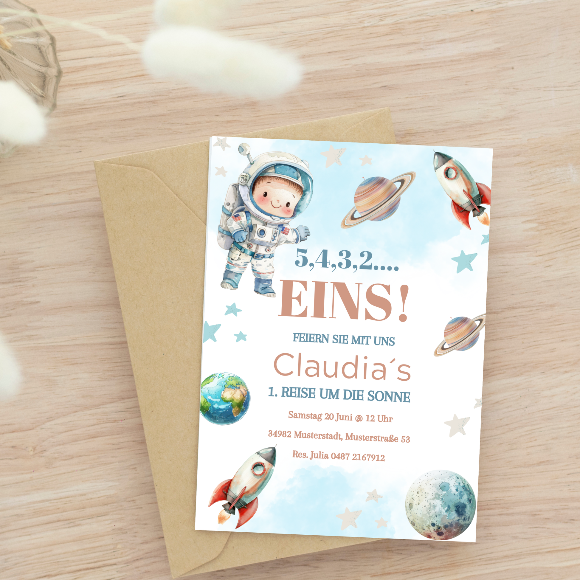 ✔ Galaktisches Design: Die Einladung kombiniert niedliche Astronauten-Motive mit kräftigen Farben für einen fröhlichen Look.