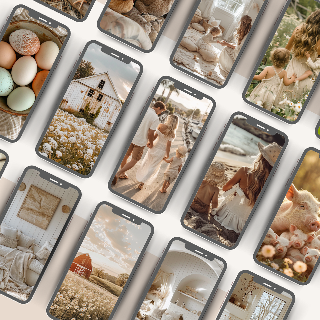 Dieses hochwertige Stock-Foto-Paket bietet Dir jeweils 135 ästhetische Bilder im Story- und Post-Format, ideal für die Gestaltung eines beeindruckenden Social-Media-Feeds, einer fesselnden Website oder eines ansprechenden E-Books. Die KI-generierten Stockfotos sind perfekt für Faceless digitales Marketing und decken eine breite Palette an Themen rund um Mütter, Familien und Kinder ab.